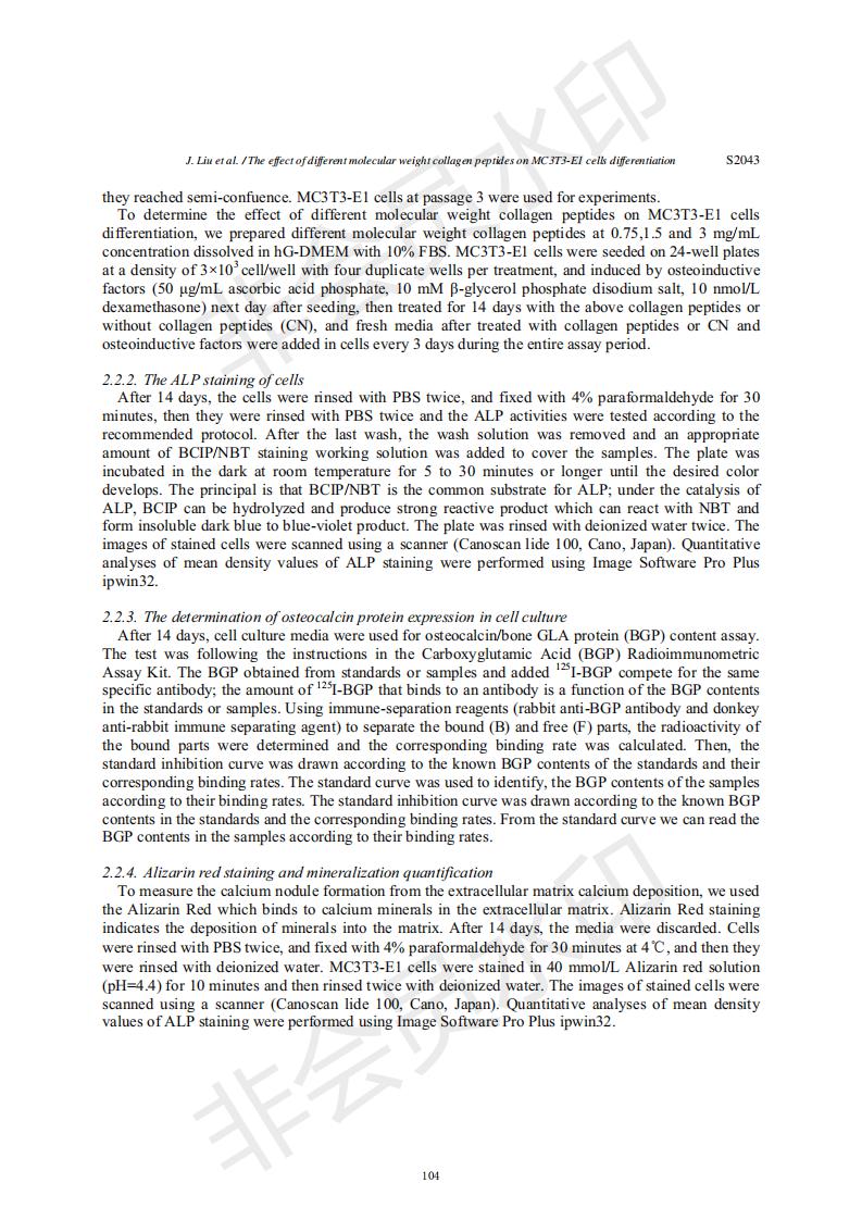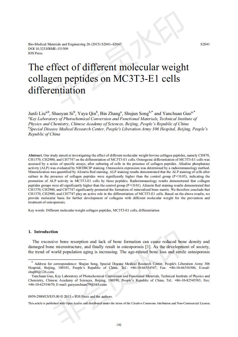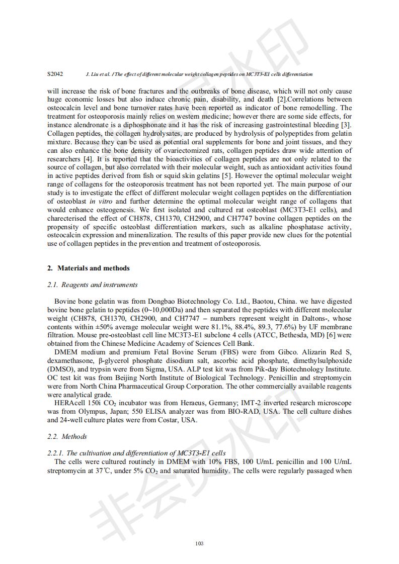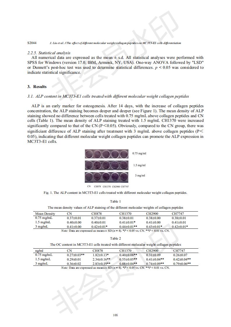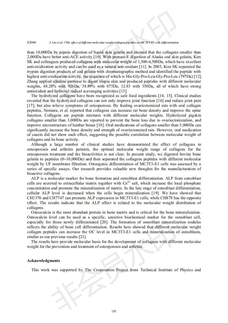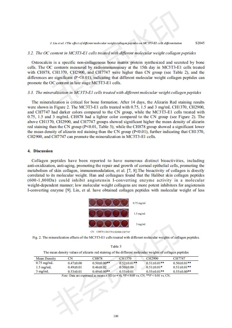 Effects of collagen peptides with different molecular weights on the differentiation of MC3T3-E1 cel